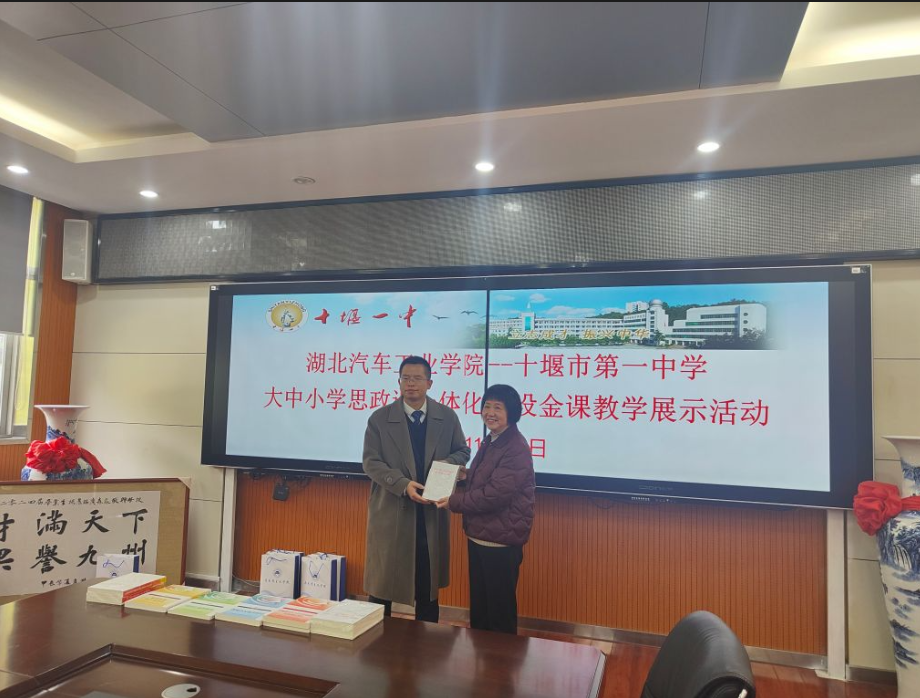 活动中,黄永昌还代表学校向十堰市第一中学赠送了《党的二十届三中全会精神辅导丛书》和思想政治理论课教材。双方就走进湖北汽车工业学院科普基地,开展“行走的大思政课”活动达成共识。(审稿 计毅波)